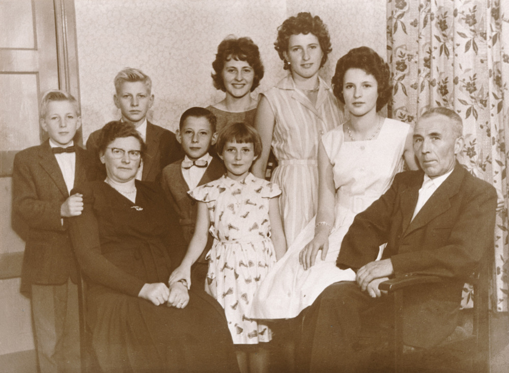 Gezin Drissen 1957 - V.l.n.r.: Willy, Harry, Antoon, Mieke, Joke, Nelly