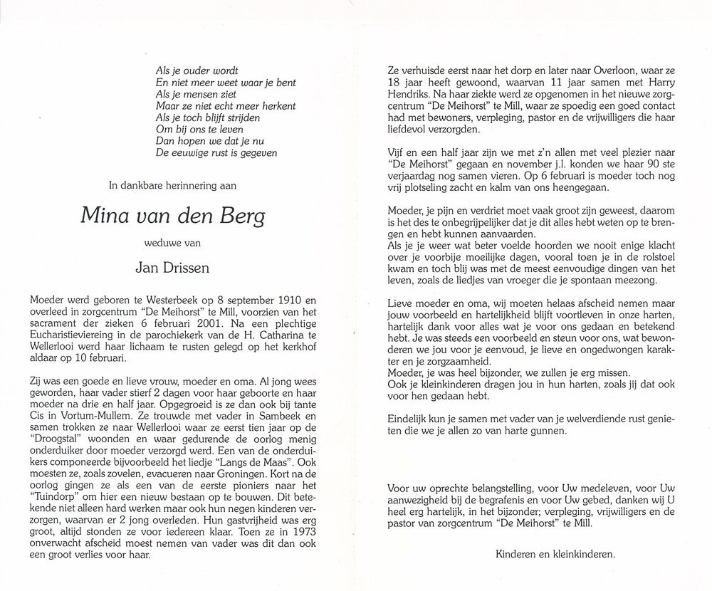 Bidprentjes van Jan en Mina Drissen-van den Berg